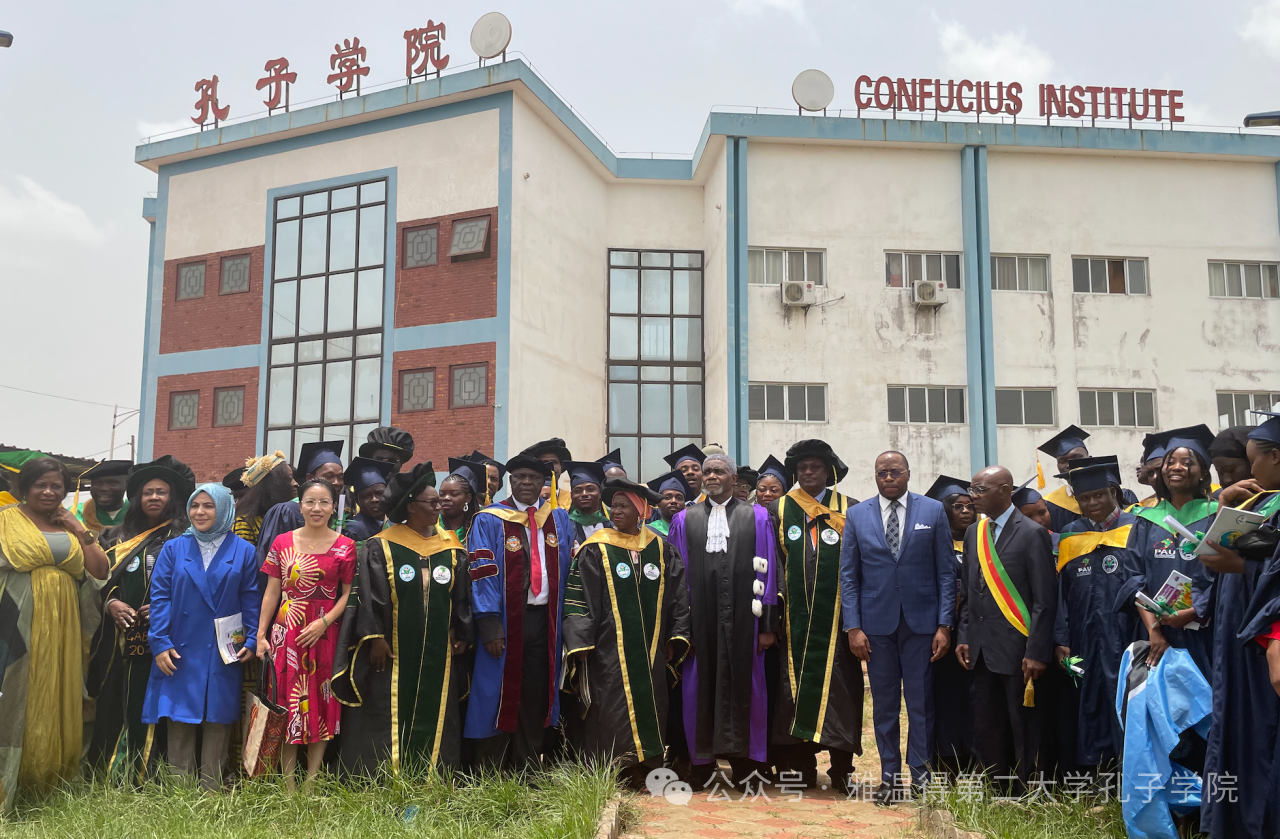 本届毕业生共计84人,其中博士生16人,硕士生68人,来自喀麦隆、尼日利亚、肯尼亚、苏丹、埃塞俄比亚、赞比亚、布基纳法索、马拉维、卢旺达、贝宁、塞拉利昂、坦桑尼亚、吉布提、津巴布韦、博茨瓦纳、几内亚、几内亚比绍、塞拉利昂等二十余个非洲联盟成员国。该学院院长、雅二大校长、泛非大学校长及索阿市市长等在致辞中均对雅二大孔院协办本次毕业典礼表达了由衷感谢和赞赏。