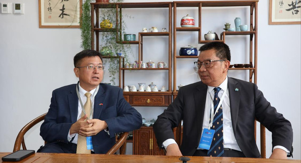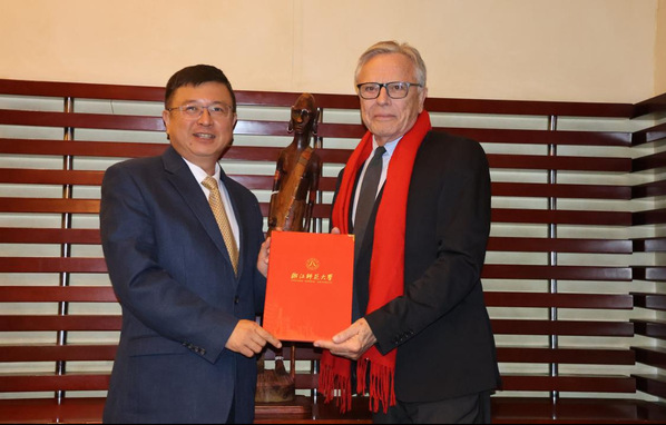 浙师大副校长(主持行政工作)邱利民与中国驻开普敦总领事尤文泽交流。图片来源 国际处