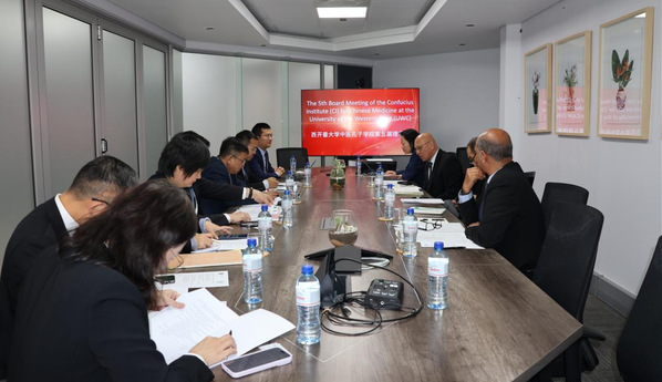 邱利民一行还考察了西开普大学中医孔子学院办公、办学场地,组织召开了西开普大学中医孔子学院第五届理事会会议,孔子学院中方院长及相关师生代表参会。邱利民指出,孔子学院对西开普省及开普敦地区的中文教学、中医推广与中国文化传播有着积极意义。当前,中非关系已提升至新时代全天候中非命运共同体,孔子学院应抢抓历史机遇、把握大好形势,进一步深化中文教育、中医等领域交流合作,努力办成南非高水平、标杆性孔子学院。