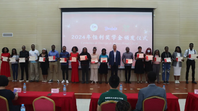当地时间10月28日,蒙德拉内大学孔子学院成功举办了2024年第二学期“恒利”奖学金颁奖仪式。出席活动的嘉宾包括莫桑比克恒利卫生制品有限公司总经理林平先生及其夫人翁礼萍女士,蒙大文学院院长Samuel Quive教授,以及孔子学院师生代表。
