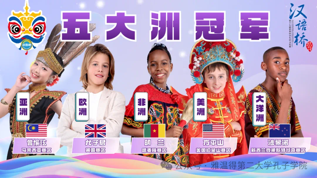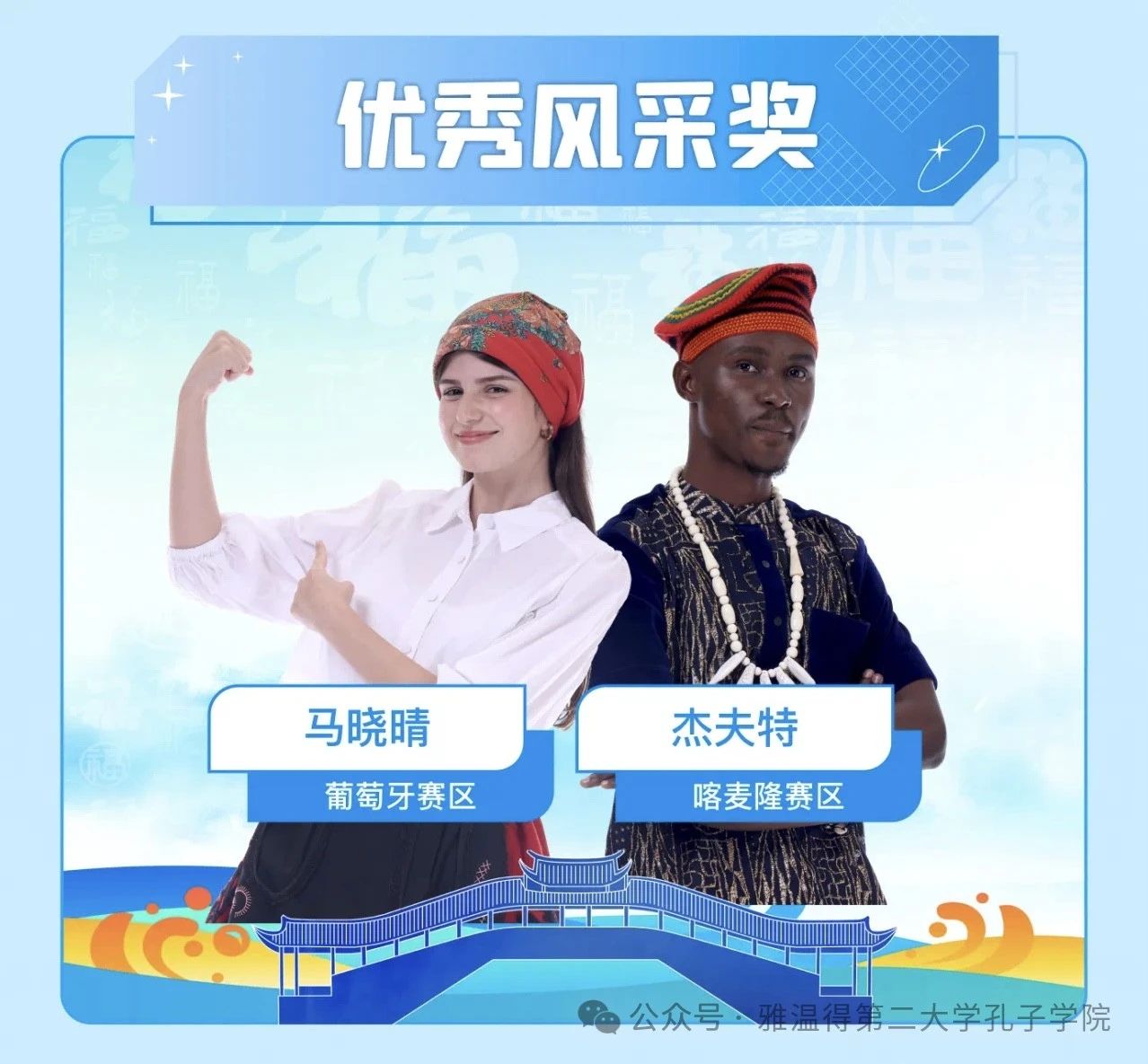 今年的大中小学生“汉语桥”全球赛中,喀麦隆雅温得第二大学孔子学院硕果颇丰。明兰(NGONGANG FANDO NAOMIE TAMANY)荣获第四届“汉语桥”小学生中文秀非洲冠军;坚持(PERSIDE TRYPHOSE ONDOBO ONDOBO)荣获第十七届“汉语桥”世界中学生中文比赛一等奖;杰夫特(TAH ABONO BRILLANT JEPHTE)荣获第二十三届“汉语桥”世界大学中文比赛“优秀风采奖”。
