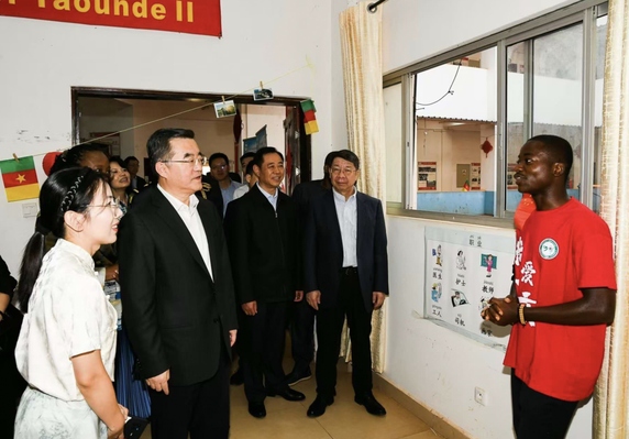 张庆伟一行参访浙江师范大学雅温得第二大学孔子学院。图片来源 雅温得第二大学孔子学院