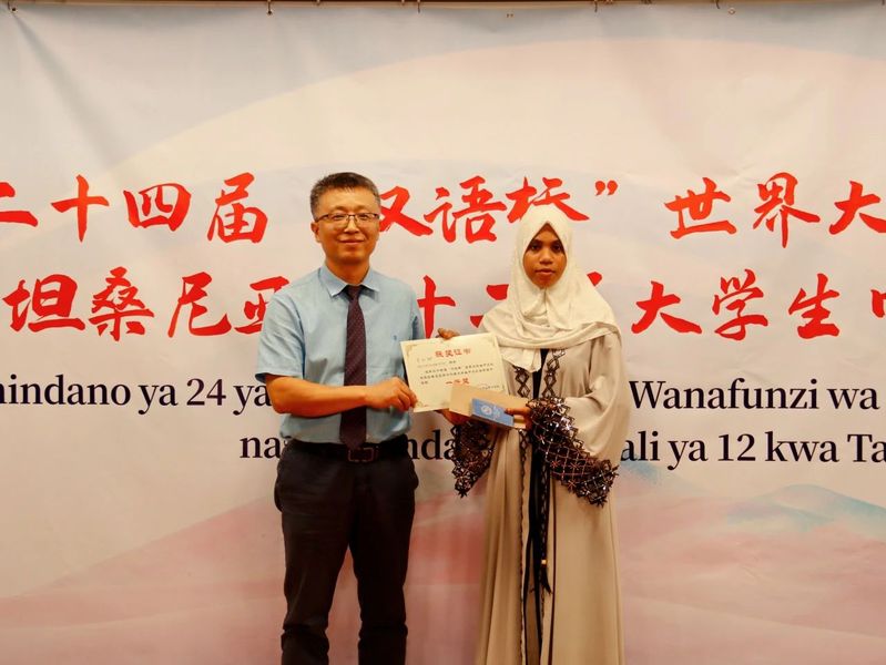 本次比赛分为主题演讲和才艺展示两个环节。16名参赛选手依次登台,用流利的中文表达对中国文化的热爱,并通过歌曲、舞蹈、朗诵和中华乐器演奏等才艺展现多元才华。经过激烈角逐,李丽娜(KURUTHUMATHUMANMAFTAH)凭借出色的表现荣获“一等奖”,周叶(NASRA IS-HAQAH)获得“二等奖”,高洁婷(GLORY JUSTIN)和李艾琳(IRINE RICHARD)获得“三等奖”。四位获奖选手将代表达大孔院参加本年度坦桑尼亚“汉语桥”总决赛。