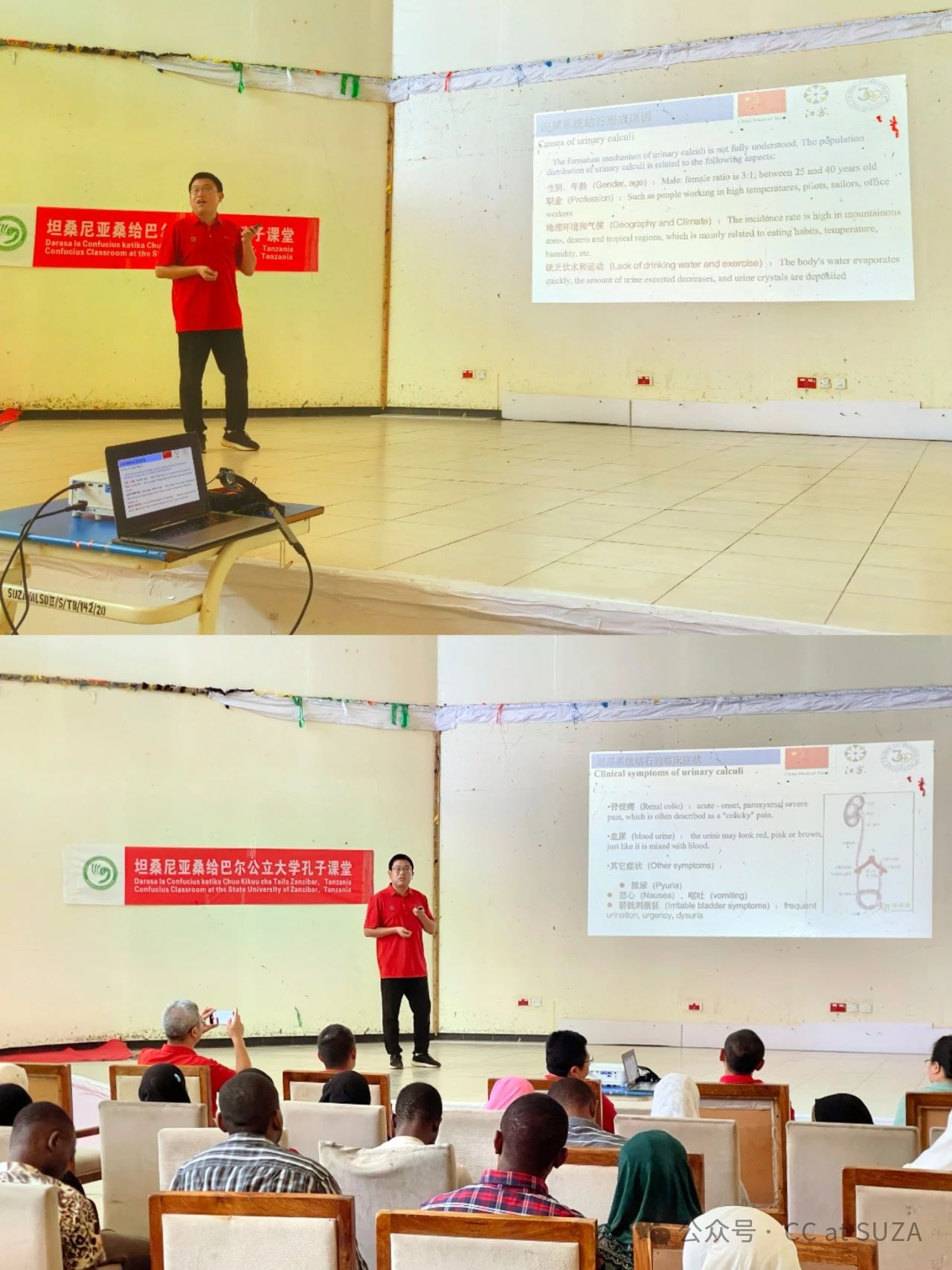 当地时间4月16日,桑给巴尔公立大学孔子课堂隆重举办了2025年国际中文日系列活动。第34期中国(江苏)援桑给巴尔医疗队的专家们与孔子课堂师生80余人,齐聚桑给巴尔公立大学旅游学院,共同呈现了一场融合文化交流与医学实践于一体的精彩盛会。作为2025年国际中文日系列活动的重要组成部分,本次活动通过语言交流与医疗合作,不仅展现了中文的实用价值,更促进了中非文化交流与医疗技术共享,为深化两国友谊搭建了新的桥梁。