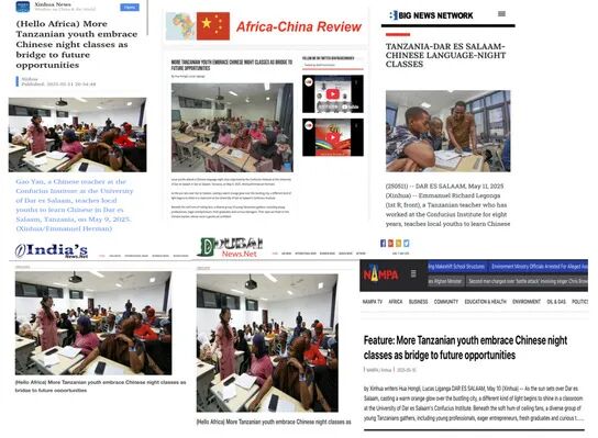 5月,浙江师范大学与坦桑尼亚达累斯萨拉姆大学共建的孔子学院接受新华社独家专访,以其中文夜校项目为切入点,深度呈现中坦语言文化交流实践。报道通过记录不同职业背景的坦桑尼亚学员学习中文的生动案例,彰显中文教育对当地青年职业发展的赋能作用。