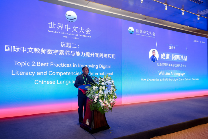 11月15日,由教育部中外语言交流合作主办、浙江师范大学协办的世界中文大会“国际中文教师数字素养与能力提升”平行会议在北京召开。坦桑尼亚达累斯萨拉姆大学校长、孔子学院理事长威廉·阿南基瑟主持会议并作主旨发言。他围绕非洲数字中文教育发展与教师素养提升等议题,阐述了合作愿景。
