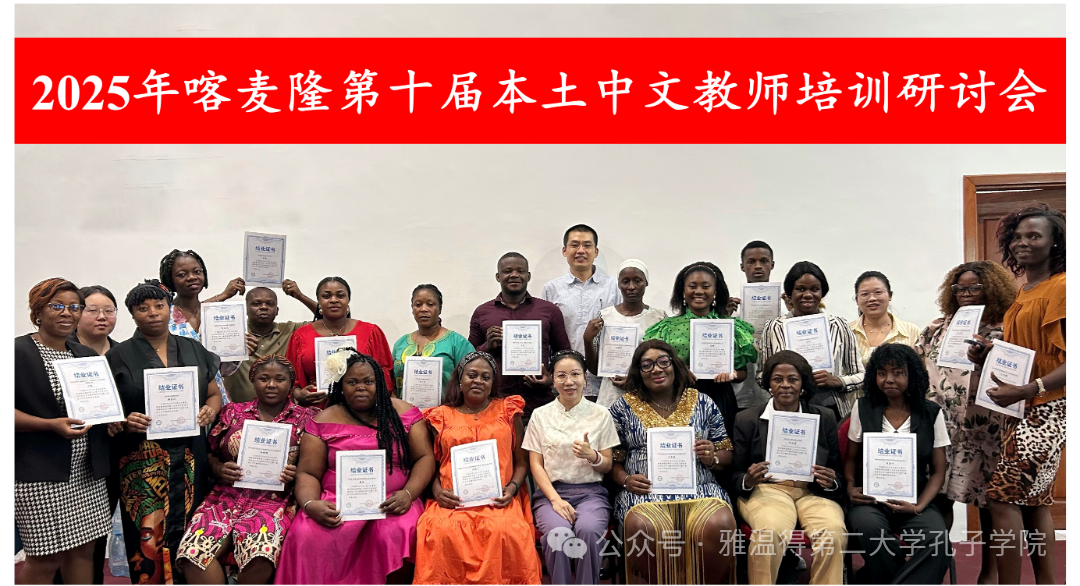 3月13日至14日,由雅温得第二大学孔子学院主办的第十届本土中文教师培训研讨会在杜阿拉市圆满落幕。本次研讨会旨在通过教学技能培训、经验交流和问题研讨,提升本土中文教师的教学水平,推动该地区中文教育事业的进一步发展。中等教育部滨海省中文督学艾美莉、雅二大孔院中方院长薛晓彬等出席开幕式。喀麦隆滨海省中小学本土中文教师和孔院教师代表共30余人参与活动。