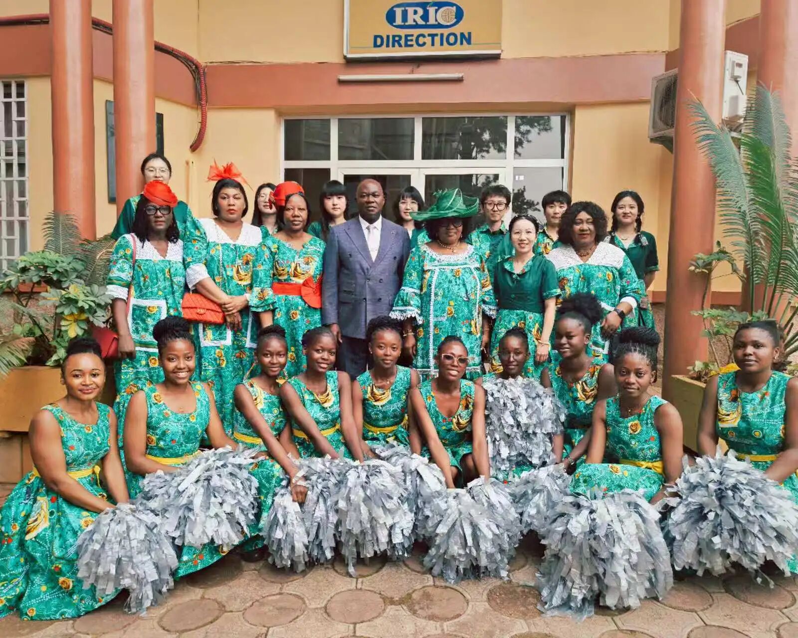 正午时分,第一夫人尚塔尔·比亚抵达主席台,大游行正式开始。喀麦隆各领域、各行业的女性方阵依次行进,队伍有序庄重。雅二大孔院方阵紧随本校方阵前行,走到主席台前时,成为现场关注的焦点。方阵转身面向主席台,教师们轻摇中国绸扇,学生们手持灯笼起舞,展现孔院师生青春昂扬的精神风貌。第一夫人向孔院方阵点头微笑、鼓掌致意,现场随之响起热烈掌声和欢呼。