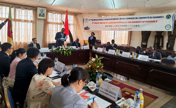 邱利民一行还参加了雅温得第二大学孔子学院第十八届理事会会议。邱利民回顾了两校携手30载把汉语培训中心建成“一院多点”全球优秀孔子学院的故事和成效。他强调,非洲始终是学校国际化办学最鲜明的特色,希望同喀方携手开启下一个更加美好的30年。