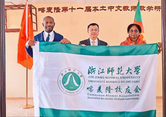 浙师大校长邱利民为喀麦隆校友会授旗。图片来源 国际处