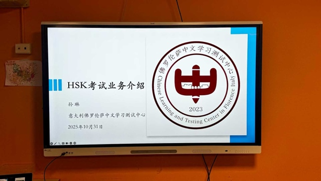 10月29日和31日,意大利佛罗伦萨中文学习测试中心分别在锡耶纳大学阿雷佐校区、佛罗伦萨中文学校举办两场考试业务推介会。推介会在线上线下同步进行,吸引了锡耶纳大学中文相关专业师生、佛罗伦萨中文学校华人学生和家长近百人参加。学测中心负责人孙琳博士重点介绍了HSK考试的功能、报考HSK的注意事项以及备考技巧,同时公布了学测中心2026年度全年考试日历,鼓励考生提早规划,积极备考。两场推介会得到意大利意中文化教育交流研究中心(CRID)、锡耶纳大学和佛罗伦萨中文学校的大力支持。